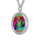 I chose gold plated so that the metal would not react with my skin oils and perspiration. But, I changed the necklace from the gold plated one to a sterling silver. My skin cells will tarnish the silver. But it will not look as bad if some portion of the gold plated necklace somehow became compromised. Zazzle did a find job turning the picture into a pendant for me. As you can see, the colors and the printing of the final product, match the preview. The picture I took is not very clear. But I am pleased with the product I received.