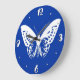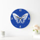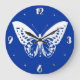 Butterfly sketch, cobalt blue and white large clock