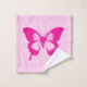 Towel set in digital sketches of assorted butterflies adapted from vintage illustrations, and digitally colored - deep fuchsia pink on a light pink background