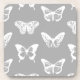 Butterfly sketch, silver grey and white coaster