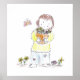 Butterfly and a girl in a flower garden with a pot of flowers.