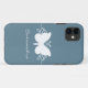 Sweet and simple Butterfly Swirls Case-mate iPhone 4 Barely There ID Case in blue featuring a lovely butterfly silhouette and swirl border. This lovely iPhone case may be customized with the personalized text of your choosing. This pretty butterfly iPhone skin is girly and stylish and perfect for protecting your phone! Click on the "Customize It" button to additional personalization options.
