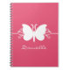 Sweet and simple Butterfly Swirls Notebook in magenta pink featuring a lovely butterfly silhouette and swirl border. This lovely notebook may be customized with the personalized text of your choosing. This pretty butterfly notebook is girly and stylish and can be used to jot down notes or other fun stuff! Click on the "Customize It" button to additional personalization options.