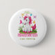 A colorful artwork in colors of pink, yellow, orange, purple, blue and green. Beautiful butterflies in colors of lavender, mauve, lilac, peach and apricot fly around. Get your son or daughter ready for their hello to school with this awesome unicorn button.
