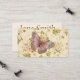 Pink butterfly on Shabby Chic floral background biz cards, brown lettering