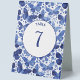 Indigo blue and white watercolor butterfly painting. Original art by Nic Squirrell. Coordinating double sided table number card with text which can be altered to suit your celebration.