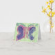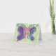 Blank notecard with a beautiful, layered watercolor of a butterfly in purples, blue and turquoise on the front front. Art by Maeve & Charlotte.