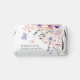 This mini chocolate bar wrapper design features a soft and whimsical layout inspired by a butterfly-themed baby shower. On the right side, delicate watercolor wildflowers and soft pink and purple butterflies flutter around, creating a dreamy, garden-inspired touch. On the left, the mom-to-be’s name and the phrase “Baby Shower” are printed in a classic gray serif font for a sweet and simple look.