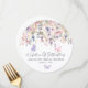 Add a beautiful, festive touch to your bridal shower table with this decorative charger plate design circle card, created to sit on top of place settings and elevate your tablescape. The round design features delicate watercolor wildflowers and greenery arranged along the top, with soft pink and purple butterflies floating across the background. The dreamy color palette of blush pinks, dusty rose, lilac, lavender, violet, and gentle greens gives the table a romantic, garden-inspired feel.