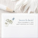 Butterfly Wildflower Names Return Address Wedding. A minimalist contemporary design with a wildflower and blue butterfly motif. Easily personalise with your names and return address. Change the text and background color if you wish to match your own wedding color theme via the Edit further option.