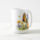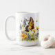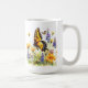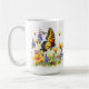 Coffee mug is shown in a lovely butterfly and wildflowers print.