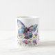 Coffee mug is shown in a lovely butterfly and wildflowers print.