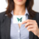Butterfly with Green Peacock Feathers Badge