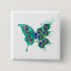 Butterfly with Green Peacock Feathers Button