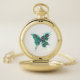 Butterfly with Green Peacock Feathers Pocket Watch