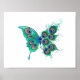Artistically drawn, fictional, green, detailed butterfly with green, beautiful, peacock feathers on white background.