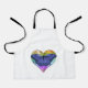 Great color and even though I ordered the kid size, it covers well enough to use during the holidays. I am not a big woman and prefer a shorter apron. I stand 5"6" and the length of the garment goes to mid-thigh. The tie straps fit well at my waist and even though there is no neck strap adjustment, the opening is plenty big enough. I am happy with the size and fit. I am sharing my apron with my 10 year old grandson, too! The color is vibrant and looks good, as shown on the website. The stitching looks strong and reinforced. Photographed is front side and back side of the apron, reinforced straps and coloring. My phone camera may not be the best at showing the details.