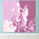 In shades of orchid, the butterfly woman emerges from the night into the day Perfect for office , home or lobby. Can easily be sized down -