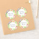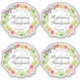 Contoured stickers featuring a butterfly on a floral wreath of roses and leaves, customized with the name of the bride and groom for wedding water and wine bottles or baby shower favors. Additional text for the event date and location. Best on 6" stickers - for a total of four approximately 3" stickers - and larger sizes.