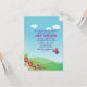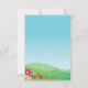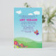 A summer-themed invitation with blue sky, wispy clouds, a hillside with flowers and a butterfly in flight. Can also be printed in a 5x7 size.