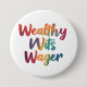 The t-shirt design for "Wealthy Wits Wager" features a stylized, vintage-inspired illustration of a gentleman, perhaps a scholar or a gambler, sitting at a table adorned with books, a quill, and a stack of gold coins. A thought bubble above his head contains the phrase "Wealthy Wits Wager," suggesting a game of intellect and fortune. The overall aesthetic is sophisticated and intriguing, hinting at a world of riddles, puzzles, and high-stakes challenges.