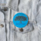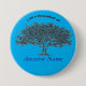 Oak tree with spreading branches, sits as a “genealogy tree” Above, curved text "I am a descendant of:" with Ancestor's name customized beneath in dark blue. Background in sky blue. Keep track of your family group - everyone wear the same button customized with your common Ancestor name.