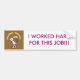 BUTTON, I WORKED HARD FOR THIS JOB!!! BUMPER STICKER