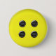 Yellow button with four "holes" to attach with sewing thread. Buttons show your support for current events and relevant topics. What is more relevant than a button to hold your clothing together?