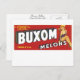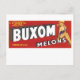 Vintage fruit crate label for Buxom Brand Melons from Yuma, Arizona.