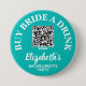 Turquoise and white button personalized with the brides's name and QR Code to Venmo to buy her a drink. Great bachelorette party or girl's weekend button for everyone in the bride tribe to wear. MATCHING items in our collection.