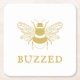 Fun, minimalist paper coaster design features gold bee with "buzzed" text. Great for birthdays, bachelorette parties and more.