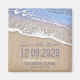 This beautiful save the date magnet features a beach scene with sand and turf. It is the perfect way to send your beach-themed wedding details to your family and friends.