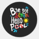 'Bye Bye School Hello Pool' cool quote for a teacher or student to wear on the last day of school or summer break.