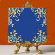This ceramic tile showcases a stunning fusion of Byzantine and Arabesque design, featuring an intricate gold tone filigree pattern set against a rich royal blue background. The ornamental flourishes reflect centuries-old decorative traditions, blending symmetry with opulence. A perfect choice for those who appreciate global design styles, historical art, and regional flair. Ideal for cultural decor enthusiasts, spiritual design collectors, Mediterranean style lovers, and interior stylists seeking a bold focal piece. Use it as an accent in a backsplash or furniture makeover, on an easel as elegant shelf decor. This tile brings timeless sophistication to your kitchen, bathroom, reading space or creative studio.