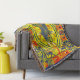 A quality printed throw has its advantages. This is a much finer weave throw than its loopier cousins, and though lighter, it is worth the investment for custom room accessorizing. The back is much prettier than the typical brown, and the fringe on the long sides very vivid, the selvage nicely done. Before photographing, I washed the throw in cold water, delicate, with a thicker woven throw the same size. On tumble dry low, this throw was dry in half the time as the other. This is a very practical quality if you use throws for furniture covers or to wrap up in frequently. The sleekness of the fabric makes it a great layer for accenting or protecting without the feeling of sitting on too much stuff. Perfect for napping or when you feel a light chill coming on. The color printing is beautiful and on this fabric, matched the design and color of my Photoshop image. This is an advantage for blending room fabrics and colors. The fringe on the short sides prints the colors from the design image and therefore varies from the side fringe. I streaked a white fractal line through the plaid pattern to give the illusion of weaving. This printed as crisp as an illusory thread, and put some white in the short side fringe, showing another advantage of print vs loomed- for artistic purposes, line lines, detail, and color integrity can be planned and preserved. My loomed throws have color limitations and more of a needlepoint texture. Print throws reproduce an exact image. The throw felt a little stiff straight out of the package, but this went away in the first delicate wash. Of course I searched the wash water for ink or bleeding and there was none.