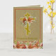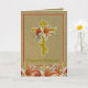 Beautiful Byzatine Catholic-Orthodox Crucifix Easter Pascha Card with Christ is Risen - Christos Voskres with lilies and a gold background