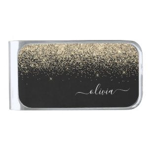 Gold Black Glitter Girly Monogram Initials Silver Finish Money ClipMore like this