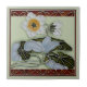 Dating to the early 1900s, this tile is reproduced from an original Boizenburg tile. We love the combination of pale and dark greens with light blue, white, yellow, and burgundy. Available in 4.5 and 6 inch wall or backsplash tiles as well as other items from coasters to keepsake boxes; desk accessories to decorative home accents. Note that, although this tile looks like it is dimensional just like the original molded tile, this reproduction is actually flat, printed in a faux relief or trompe l'oeil ("fool the eye") style that captures the look of the raised detailing on the original on a smooth surfaced ceramic tile.