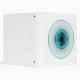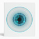 A cybernetic blue eye with various digital displays, including circles, dots, and squares, some lit up and some not, with a small crosshair in the middle and the word "vision" backwards on the bottom right.