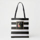 C Gold Floral Monogram | Black White Gold Stripes Tote Bag