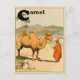 Alphabet animal C is for Camel trekking in the open desert on a safari with a traveler who wears a traditional saffron-colored garment and hat. This kind of Bactrian camel with two humps accounts for only 10% of the world population, with a habitat in central Asia.