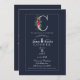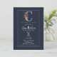 C Monogram Last Initial Modern Blue Floral Wedding Invitation