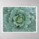 Photograph of a growing cabbage taken from above showing layers of beautiful green flawless leaves.