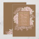 A romantic and elegant invitation with pink cabbage roses against a dotted chocolate background. Well-suited for any feminine celebration.