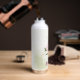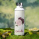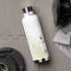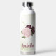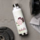 Beautiful water bottles, featuring cabernet purple and pink flowers and green leaves