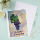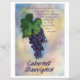 Cabernet Sauvignon Wine Grapes Painting: The painting displays Cabernet Sauvignon wine grapes. The quote states, "A red wine with a distinctive black currant flavor with hints of tobacco, cedar, and mint. It has a well rounded style and can be considered the king of red grapes." Rendered in watercolor.