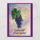 Cabernet Sauvignon Wine Grapes Painting: The painting displays Cabernet Sauvignon wine grapes. The quote states, "A red wine with a distinctive black currant flavor with hints of tobacco, cedar, and mint. It has a well rounded style and can be considered the king of red grapes." Rendered in watercolor.