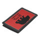 This Cabin Bear Trifold Wallet displays a red background, black bear, with "adventure" written underneath in rustic fashion. There is a template for your name in black. With two credit card slots, a secure bill compartment, an ID window, and a compact design, it keeps your essentials organized and easily accessible. Great for his birthday, this wallet makes a thoughtful gift.