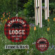 Decorate your rustic cabin with this cozy personalized wind chime design. In shades of red, black and white, this custom design includes the silhouette of a bear and the words "[Your Name]'s Lodge, Cabin Sweet Cabin." Keep or change the text using the easy templates.