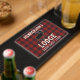 Decorate your rustic cabin with this cozy personalized bar mat. In shades of red, black and white, this custom design includes the silhouette of a moose and the words "[Your Name]'s Lodge, Cabin Sweet Cabin." Keep or change the text using the easy templates.